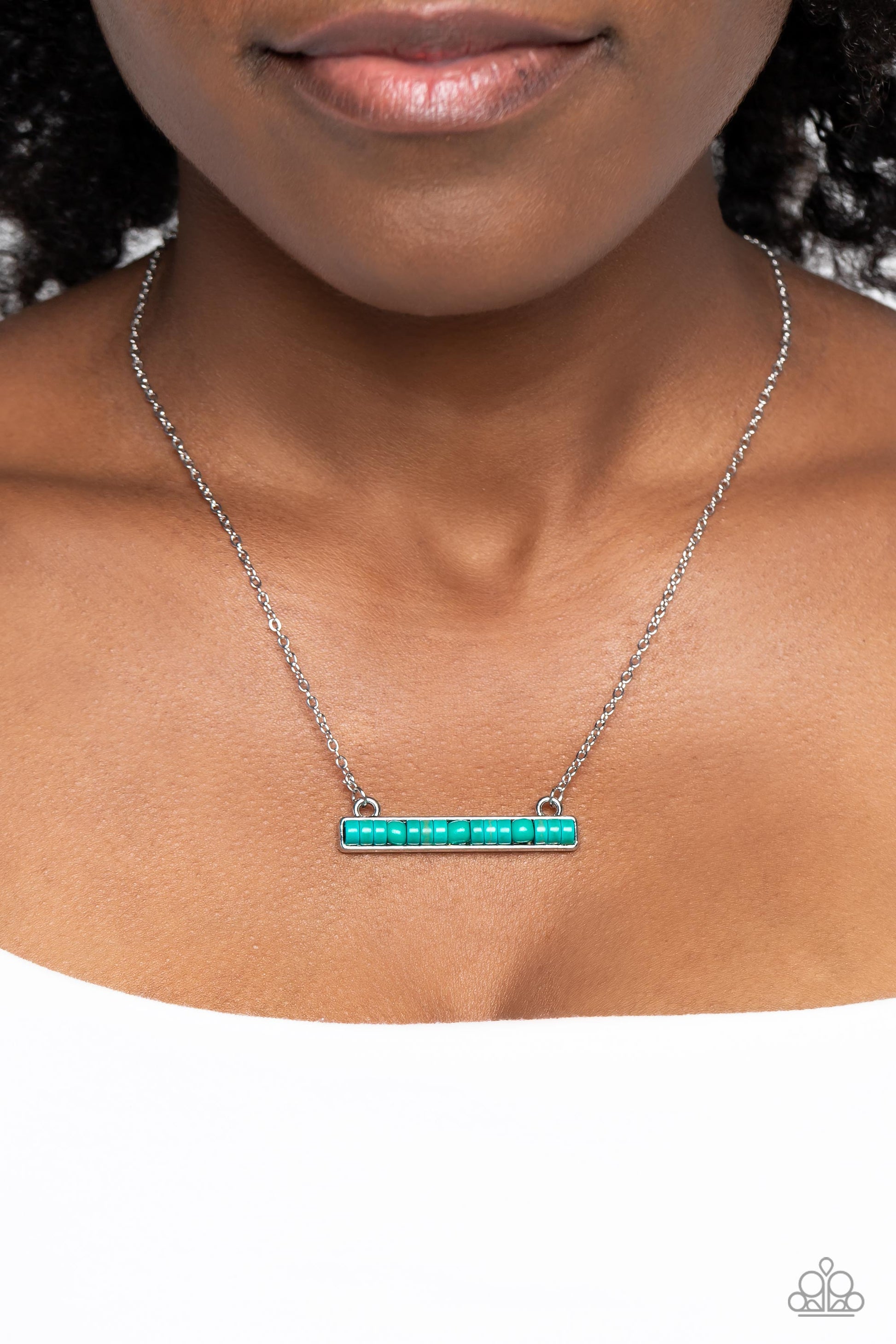 Cascading from a dainty silver chain, a collection of earthy turquoise stone discs and beads are set in a square silver bar setting, creating an understated, harmonious display. Features an adjustable clasp closure. As the stone elements in this piece are natural, some color variation is normal.