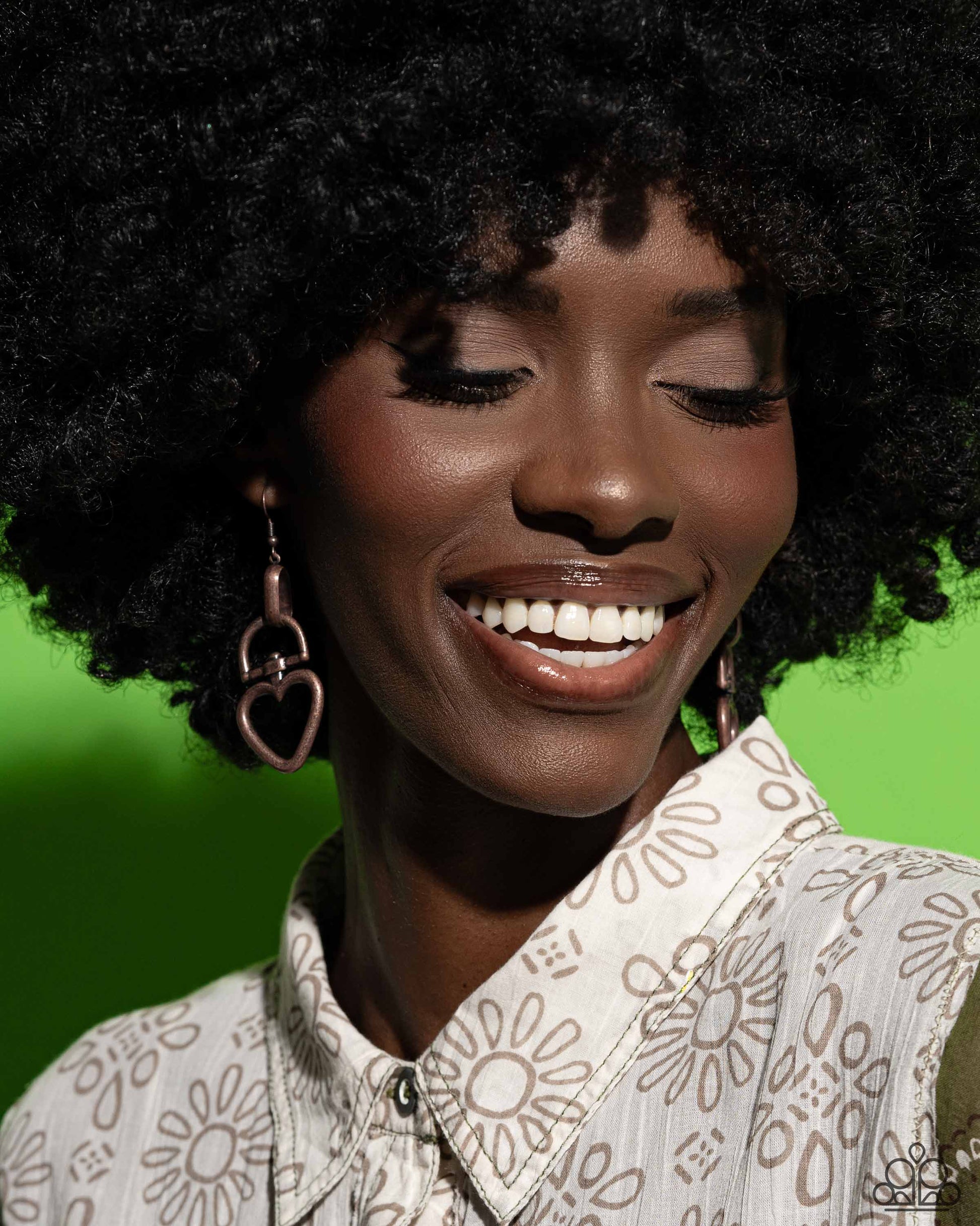 Featuring a high sheen shimmer, a glistening copper fitting attaches to a copper half-circle frame that gently curves into a heart padlock-like lure. Earring attaches to a standard fishhook fitting.